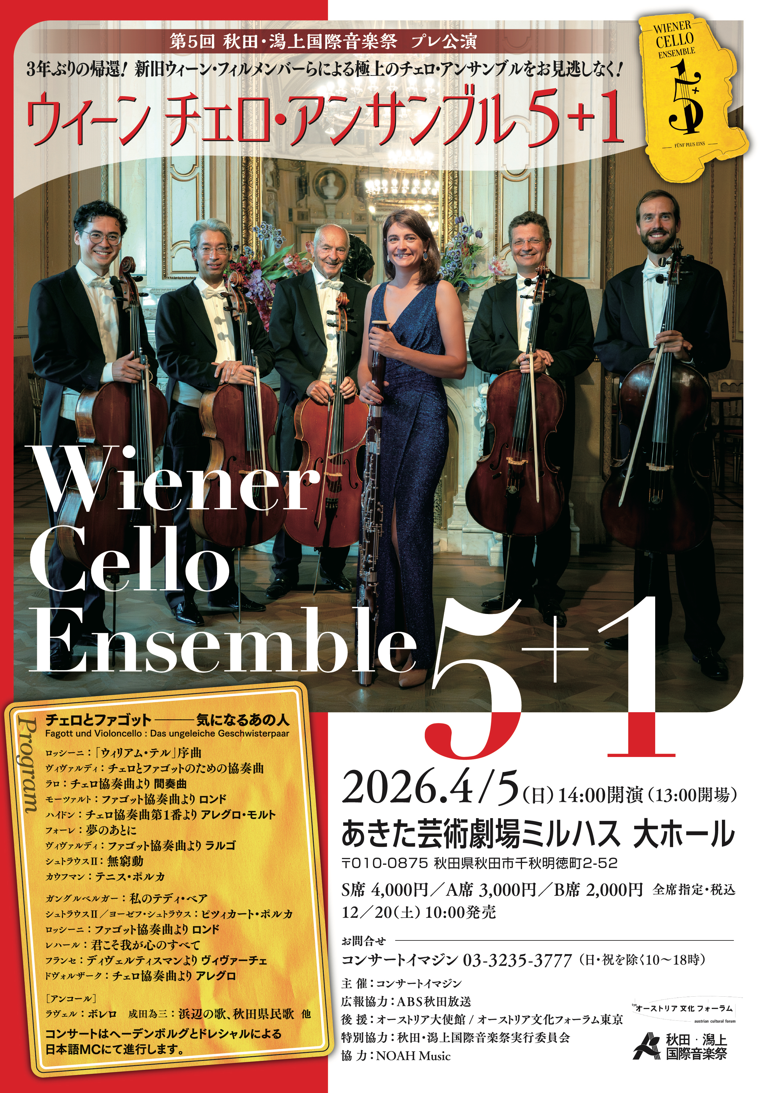 発売日:ウィーン チェロ・アンサンブル 5+1 2025/12/20(土)~ 2026/3/31(火)